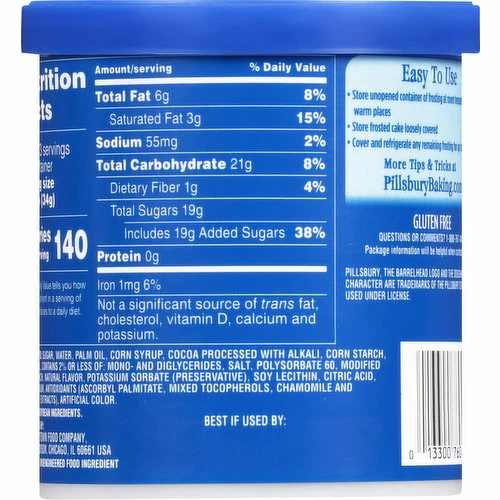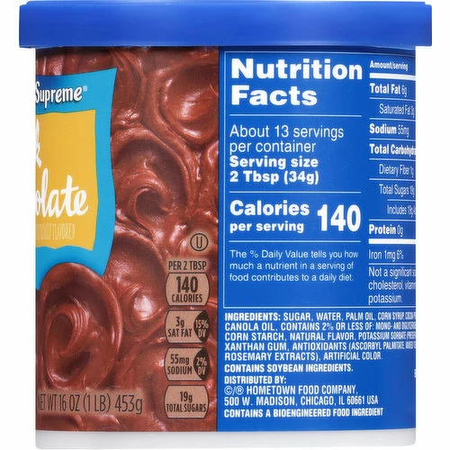 Sugar, Water, Palm Oil, Corn Syrup, Cocoa Processed with Alkali, Corn Starch, Canola Oil, Contains 2% or Less of: Mono-and Diglycerides, Salt, Polysorbate 60, Modified Corn Starch, Natural Flavor, Potassium Sorbate (Preservative), Soy Lecithin, Citric Acid, Xanthan Gum, Antioxidants (Ascorbyl Palmitate, Mixed Tocopherols, Chamomile and Rosemary Extracts), Artificial Color.