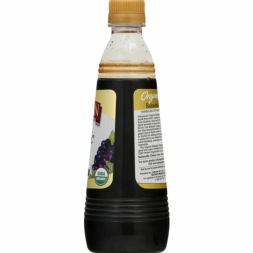 Naturally gluten free. USDA Organic. Certified Organic by QAI. Non GMO Project verified. nongmoproject.org. Quality since 1906. Pompeian’s Organic Balsamic Vinegar is made from select, organically grown grapes from Modena, Italy, and harvested at the ripest moment to ensure the highest level of flavor. Our Balsamic Vinegar is produced in the time-honored tradition of Modena. The grape juice is slowly cooked and then placed in barrels for refining and aging. This adds a complexity to our vinegar that is perfect for salad dressings, marinades, and to drizzle on vegetables. Our organic balsamic vinegar not only tastes great but also Certified Non-GMO by the by the Non-GMO Project Organization and caramel color free. Non-allergenic. As a natural product, taste and appearance may vary. May contain mother. www.pompeian.com. For more product information and recipes, visit www.pompeian.com. For questions or comments, call 1-800-Pompeian (1-800-766-7342). Imported from Italy. Packed in the USA.