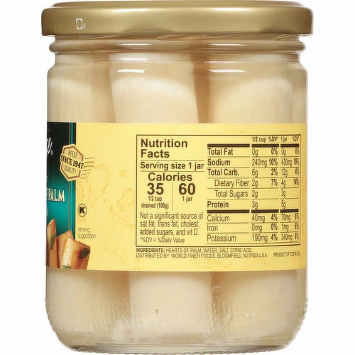 Hearts of Palm, Water, Salt, Citric Acid.