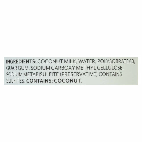 Coconut Milk, Water, Polysorbate 60 Guar Gum, Sodium Carboxyl Methyl Cellulose, Sodium Metabisulfite (Preservative).