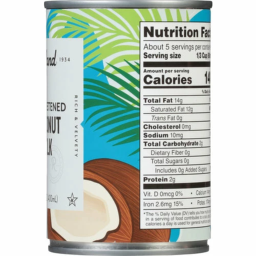 Est. 1934. Robust flavor. Rich & velvety. Widely used in Pan-Asian and Indo-Caribbean cooking, coconut milk creates a creamy and rich tropical base for curries, sauces, and soups. It is also a popular alternative in contemporary cooking and baking. Food safe.