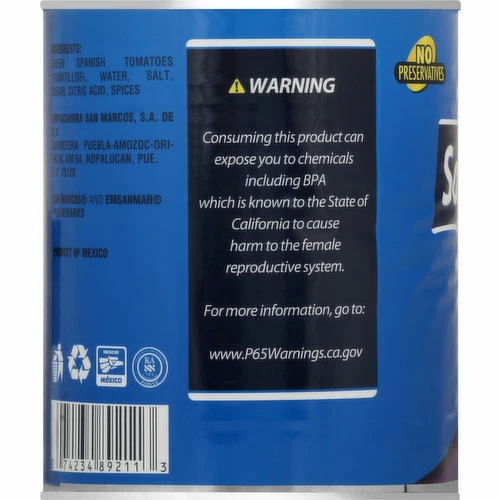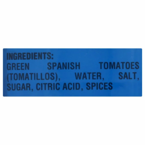 Green Spanisg Tomatoes (Tomatillos), Water, Salt, Sugar, Citric Acid, Spices.