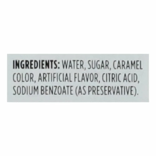 Water, Sugar, Caramel Color, Artificial Flavor, Citric Acid, Sodium Benzoate (as Preservative).
