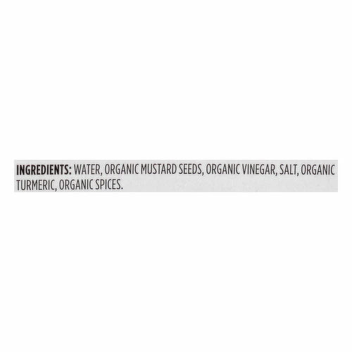 Water, Organic Mustard Seeds, Organic Vinegar, Salt, Organic Turmeric, Organic Spices.