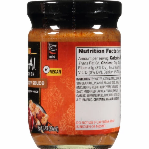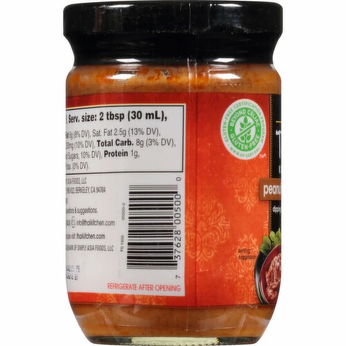 Thai Kitchen Gluten Free Peanut Satay Sauce is crafted with peanuts slowly simmered in coconut milk and spices for a sweet, earthy taste. Serve it as a cooking sauce or toss it with noodles for an amazing stir-fry! This incredibly versatile gluten-free sauce makes the perfect salad or noodle bowl dressing, accompaniment to grilled meats or dipping sauce for veggies or seafood. Our Peanut Satay Sauce brings the memorable flavors of southern Thailand right to your dinner table or backyard. This Thai Kitchen Gluten Free Peanut Satay Sauce is in a Glass jar that is 8 fluid ounces. Store this shelf-stable item at an ambient temperature.