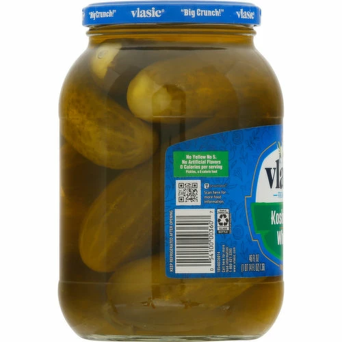 No artificial dyes (Colored with turmeric). Fresh packed. Big crunch! That’s one crunchy pickle! Crunchy! No yellow 5.